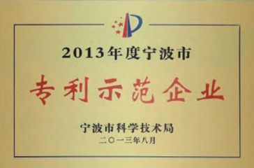 2013年:荣获“宁波市专利示范企业”,至今公司已有各种专利近200项。