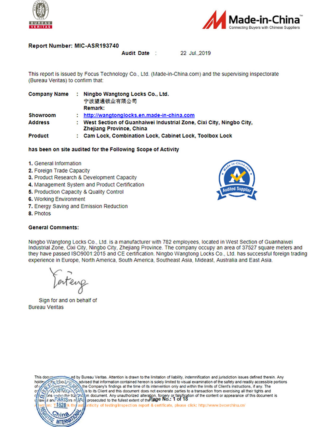 公司创建于1979年,实力雄厚,设备优良。至今占地面积38000平米、建筑面积45000平米,员工1285人,专业技术人员115余人,是中国较大的锁具生产商之一,专业制造用于各种钢制家具的系列锁具、塑料轴承,以及密集架、系列注塑、挤塑配件和五金配件。管理科学、技术优先。并已通过ISO9001:2015质量管理体系,BV,SGS认证,公司长期与国内外1000多家知名的办公家具厂家合作,并已成为”宜家”钢家具锁具指定供应商。目前已于IKEA ,THULE , HUAWEI ,HONEYWELL ,HOMEDEPOT , HERMAN MILLER 等知名品牌合作,并赢得良好口碑。