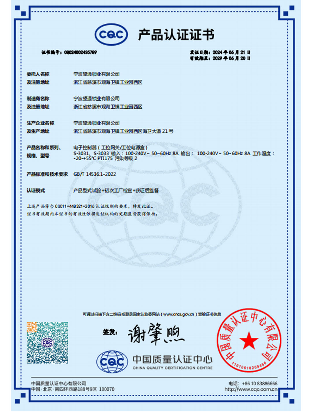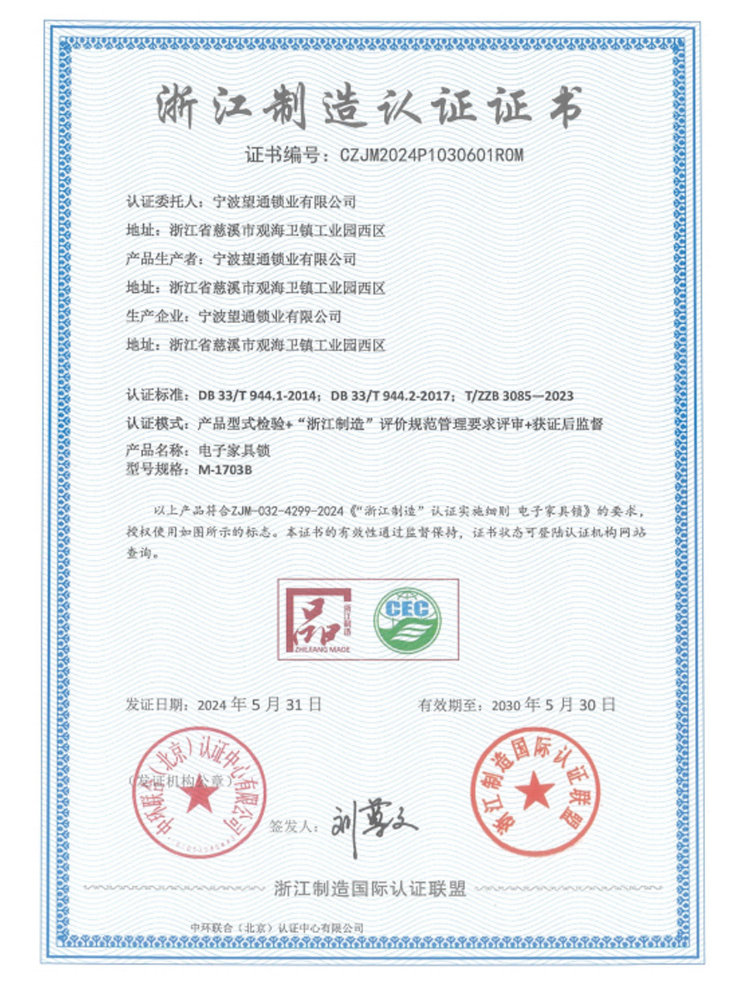 2015年:以我司为组长单位起草的《中国家具锁行业标准》,经过两年的努力,于2015年通过国家验收,并且于当年10月1日起正式实施。同年,被宁波市四部门授予“宁波市企业技术工程中心”。